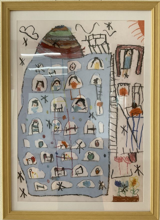 この絵は、昨年度ゆり組園児の作品で、世界児童画展「日本美術教育連合賞」を受賞しました。